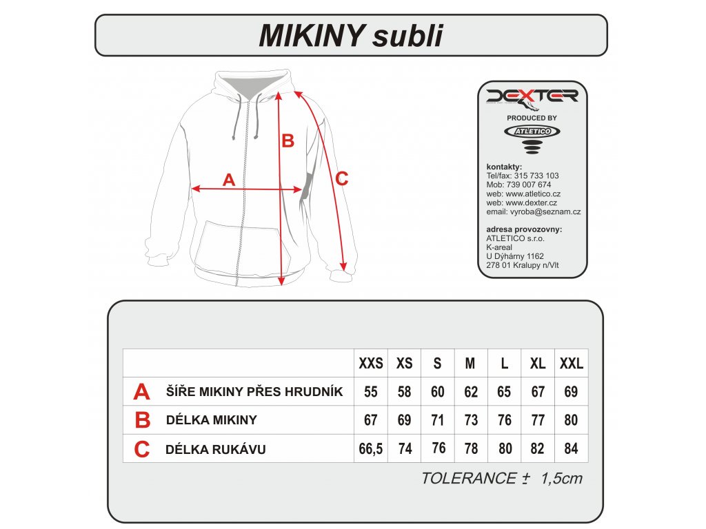 - XS - XXXL- více informací získáte na e-mailu: obchod@atletico.cz